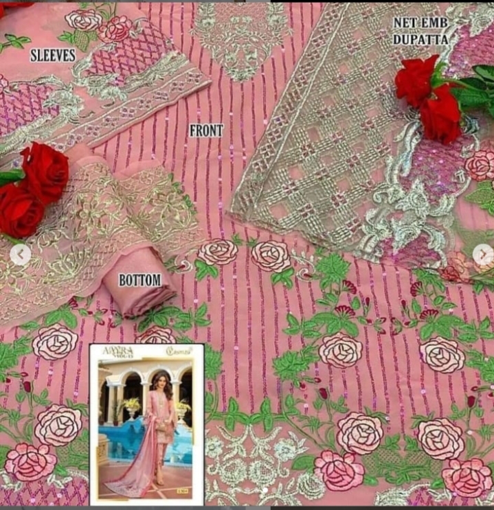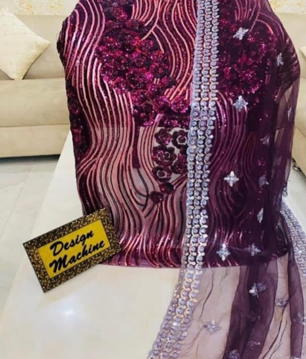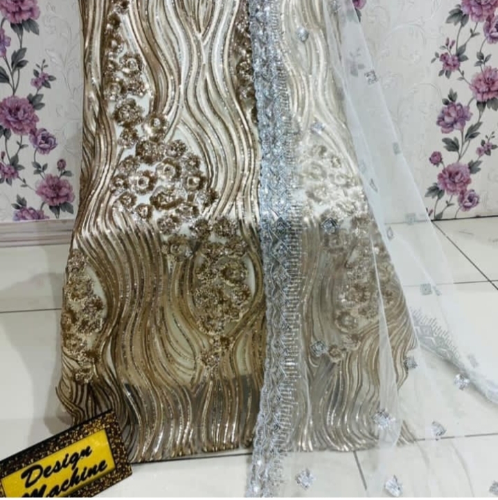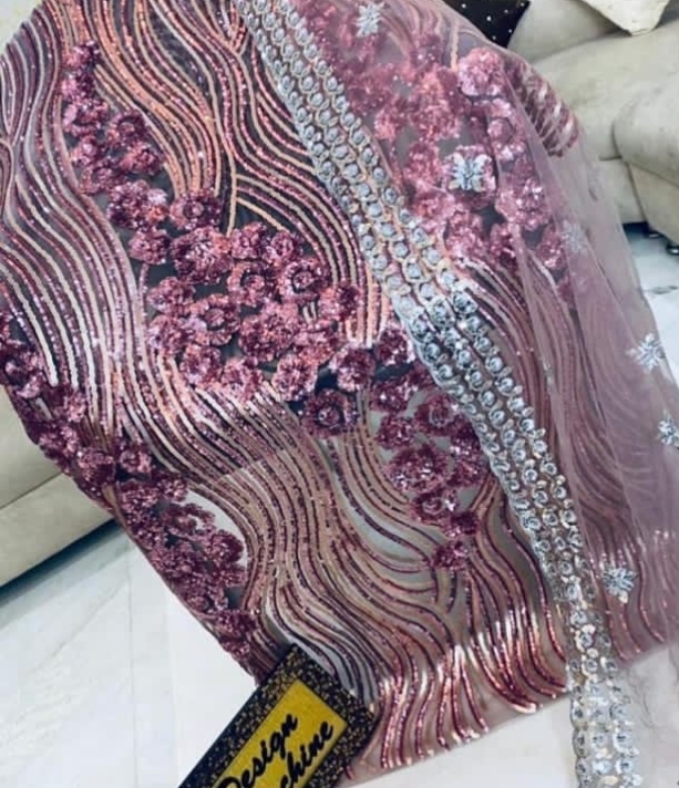 Beautiful soft nett sequins embroidery shirt fabric back plain nett